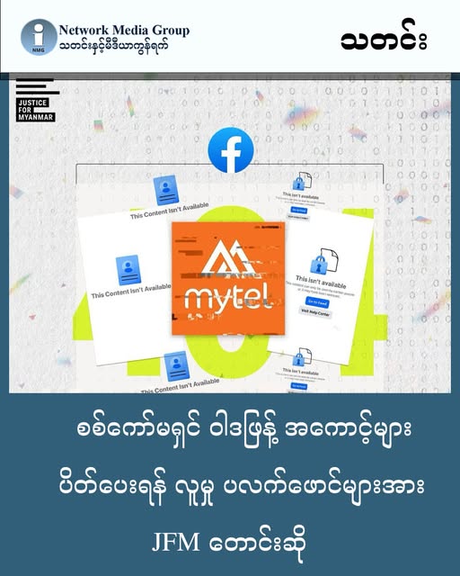 Justice For Myanmar (JFM) အဖွဲ့က Alphabet၊ Apple၊ TikTok နှင့် Telegram လူမှု ကွန်ရက် ပလက်ဖောင်းများအား စစ်ကော်မရှင်၏ ဝါဒဖြန့်ချိရေး နှင့် စီးပွားရေး ယန္တရားများ ပိတ်ပင်ပေးရန် တောင်းဆိုလိုက်သည်။