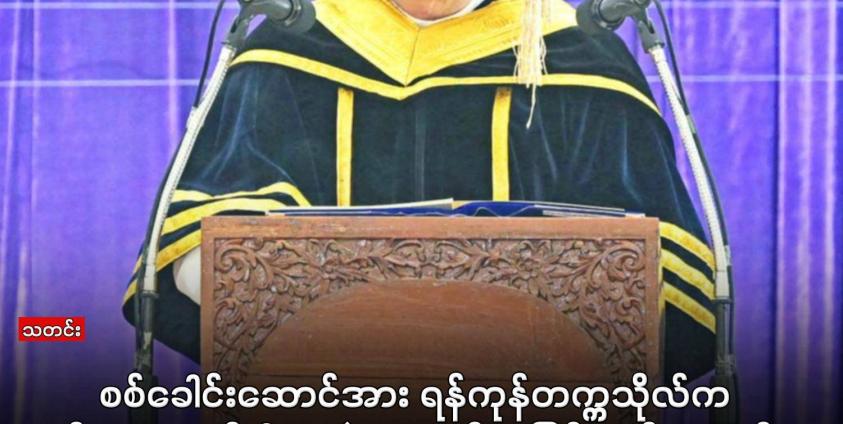 စစ်ခေါင်းဆောင်အား ရန်ကုန်တက္ကသိုလ်က ဂုဏ်ထူးဆောင်ပါရဂူဘွဲ့ပေးအပ်မှု ပြင်းထန်စွာ ရှုတ်ချ
