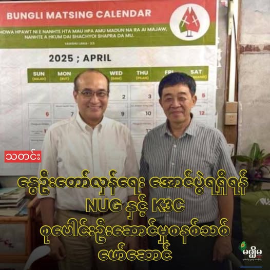 ဓာတ်ပုံ - NUGဝန်ကြီးဒေါက်တာဇော်ဝေစိုးနဲ့KIO/ KIA ဒုတိယဗိုလ်ချုပ်ကြီး ဂွန်မော်တို့ ၂၀၂၅ ခုနစ် ဇူလိုင်လက တွေ့ဆုံခဲ့စဉ်။( Zaw Wai Soe )