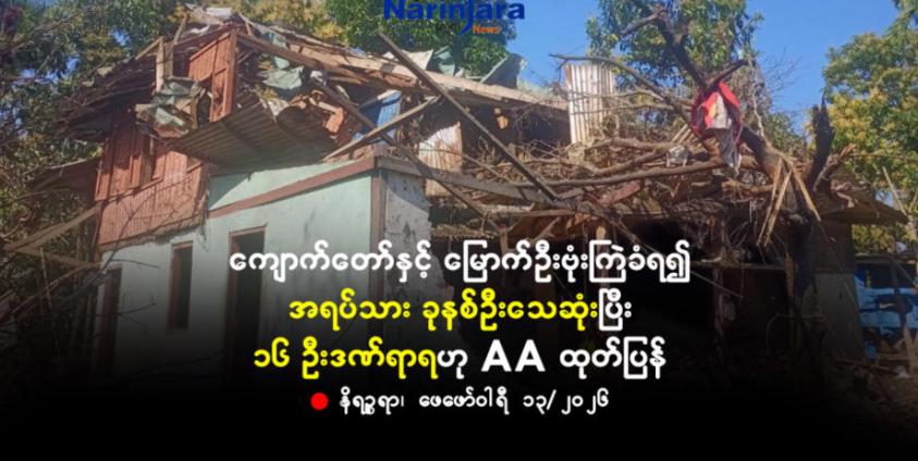ကျော်သီဟ — ရခိုင်ပြည်၊ ကျောက်တော်မြို့နှင့် မြောက်ဦးမြို့တို့ ယမန်နေ့တစ်ညတည်းတွင် တပြိုင်တည်းဗုံးကြဲခံရ၍ သုံးလသားအရွယ်ကလေးငယ်အပါအဝင် အရပ်သား ခုနစ်ဦးသေဆုံးပြီး ၁၆ ဦးဒဏ်ရာရရှိသွားသည်ဟု ထိခိုက်သေဆုံးသူများ၏အသေးစိတ်အချက်အလက်များနှင့်တကွ အာရက္ခတပ်တော်(AA)က ယနေ့ ထုတ်ပြန်သည်။
