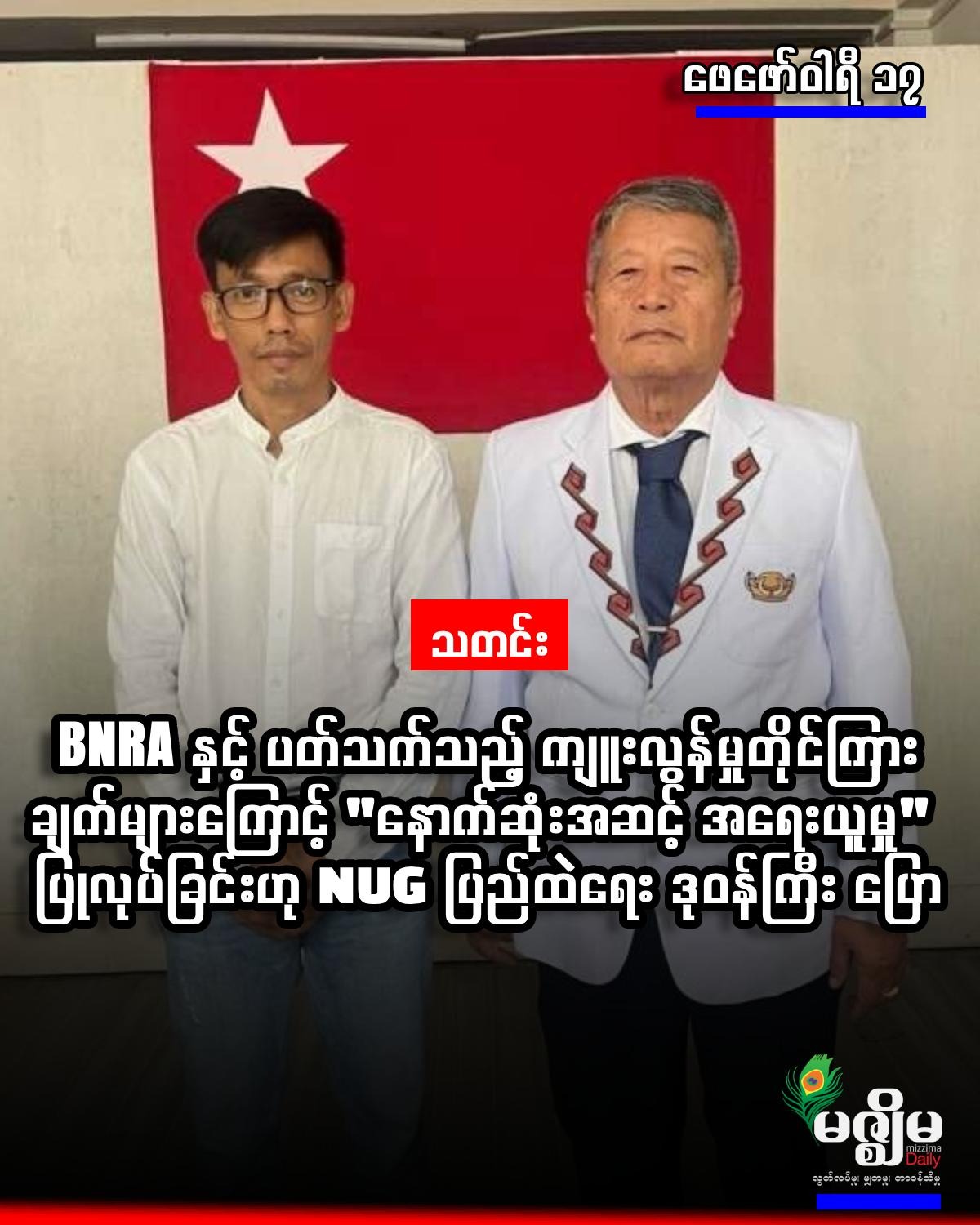 ဓာတ်ပုံ - NUG ယာယီသမ္မတ ဒူဝါလရှီးလနှင့်အတူတွေ့ရသည့် ပြည်ထဲရေး ဒုဝန်ကြီး ဦးကျော်နီ (မျက်မှန်ဖြင့်) ။ စစ်ကိုင်းတိုင်း၊ ပုလဲမြို့နယ်အတွင်း အမျိုးသားညီညွှတ်ရေးအစိုးရ (NUG) လက်အောက်ခံတပ်ဖွဲ့များနှင့် ဗမာအမျိုးသားတော်လှန်ရေးတပ်မတော် (BNRA) တို့အကြား ဖေဖော်ဝါရီ ၁၇ ရက် နံနက်ပိုင်းတွင် ပစ်ခတ်မှုများ ပြင်းထန်စွာ ဖြစ်ပွားခဲ့သည်။