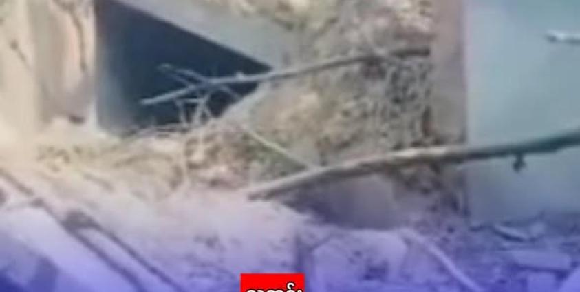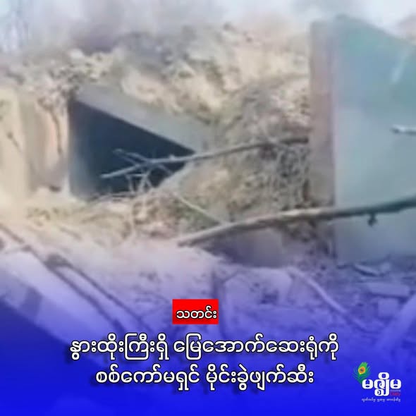 ဓါတ်ပုံ - စစ်ကော်မရှင်တပ်သားများ မြေအောက်ဆေးရုံးကို ဖောက်ခွဲရန် မိုင်းများ တပ်ဆင်နေပုံ နှင့် မိုင်းခွဲပြီးနောက် တွေ့ ရသည့် အပျက်အစီးများ ကိုတွေ့ ရစဉ် (မှိုင်းဝေတယ်လီဂရမ်ချန်နယ်)