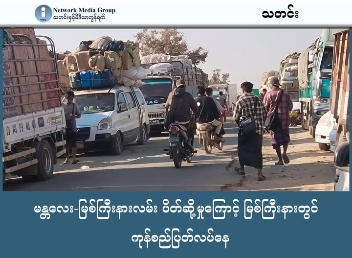 မန္တလေး-မြစ်ကြီးနားလမ်းပိုင်း ပိတ်ဆို့နေမှုကြောင့် မြစ်ကြီးနားတွင် ကြက်သားတစ်ပိဿာ ၄ သောင်းကျပ်အထိ စံချိန်တင်ဈေးတက်နေပြီး အခြေခံစားသောက်ကုန်များပါ ပြတ်လပ်နေပြီဟု မြို့ခံများက ပြောသည်။