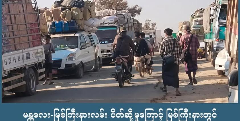 ထိုသို့ စစ်ရေးတင်းမာမှုများကြောင့် မန္တလေး-မြစ်ကြီးနားလမ်းပိုင်းကို နှစ်ဖက်တပ်များက အကန့်အသတ်ဖြင့်သာ သွားလာခွင့်ပြုထားပြီး ကုန်ကားကြီးများမှာမူ လမ်းခရီးအဆင်မပြေမှုကြောင့် ဂိတ်များတွင် ပိတ်မိနေခြင်း ဖြစ်သည်။