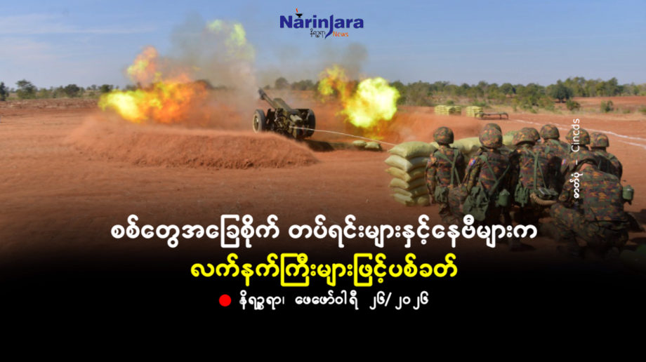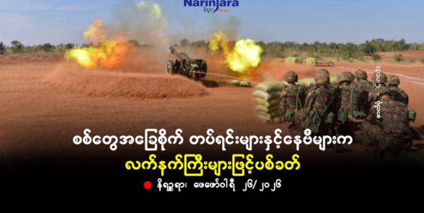 စစ်တွေအခြေစိုက် တပ်ရင်းများနှင့်နေဗီများက လက်နက်ကြီးများဖြင့်ပစ်ခတ်