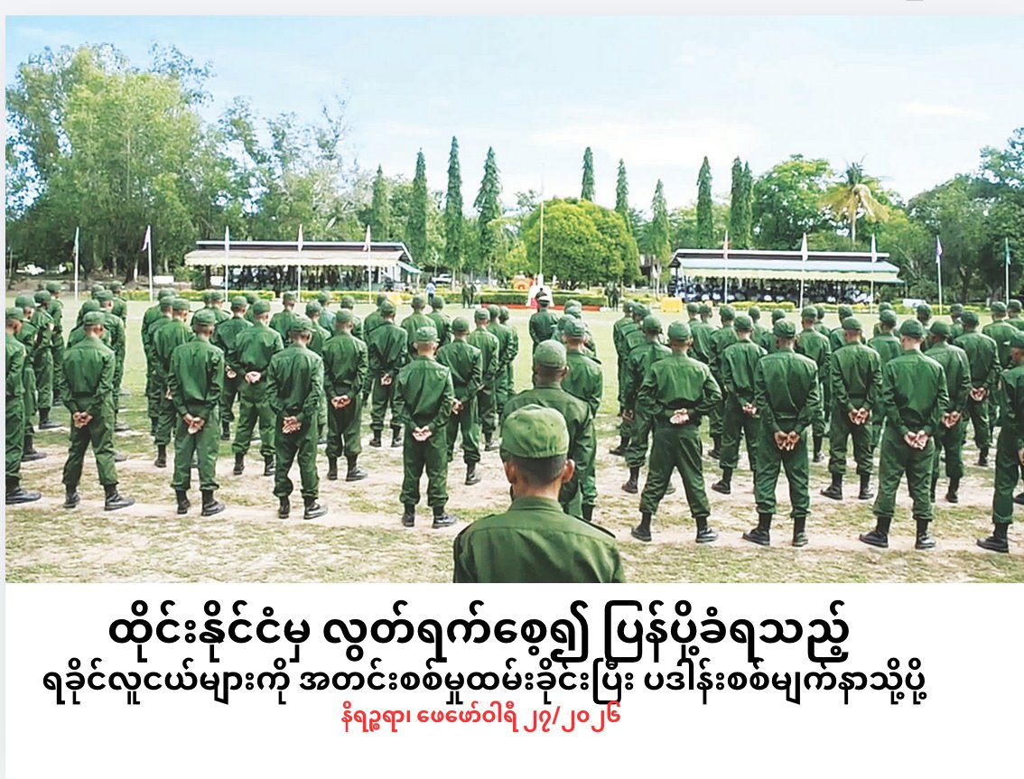 ခိုင်လူလှ (ရိုးမမြေ) — ထိုင်းနိုင်ငံတွင် ဖမ်းဆီးခံရပြီး အချုပ်ကျကာ လွတ်ရက်စေ့၍ ပြန်ပို့ခံရသည့် ရခိုင်လူငယ်များကို စစ်မှုထမ်းခိုင်းပြီး ပဒါန်းစစ်မျက်နှာသို့ပို့ဆောင်လိုက်သည်ဟု မိသားစုဝင်တစ်ဦးက ပြောသည်။