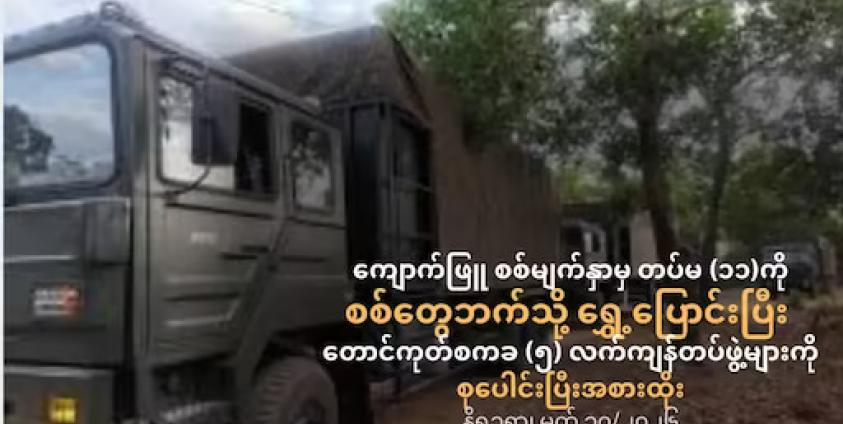 ရခိုင်ပြည်၊ ကျောက်ဖြူမြို့စစ်နှာတွင် အာရက္ခတပ်တော်နှင့် ထိပ်တိုက် ရင်ဆိုင်တိုက်ခိုက်နေသည့် အကြမ်းဖက် စစ်ကော်မရှင် တပ်မ (၁၁) အား စစ်တွေစစ်မျက်နှာသို့ ရွှေ့ပြောင်းသွားပြီး ၎င်းနေရာတွင် တောင်ကုတ်စကခ (၅) လက်ကျန် တပ်ဖွဲ့များဖြင့် စုပေါင်းပြီးအစားထိုးလိုက်သည်ဟု စစ်ရေး သတင်းရင်းမြစ်အရ သိရသည်။