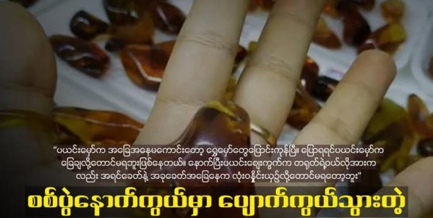 ကချင်ပြည်နယ်၊ တနိုင်းမြို့နယ်ထဲမှာ ထွက်ရှိတဲ့ ပယင်းကျောက်တွေကို စျေးကွက်ထဲမှာ မြင်တွေ့ရပုံ Photo - CJ