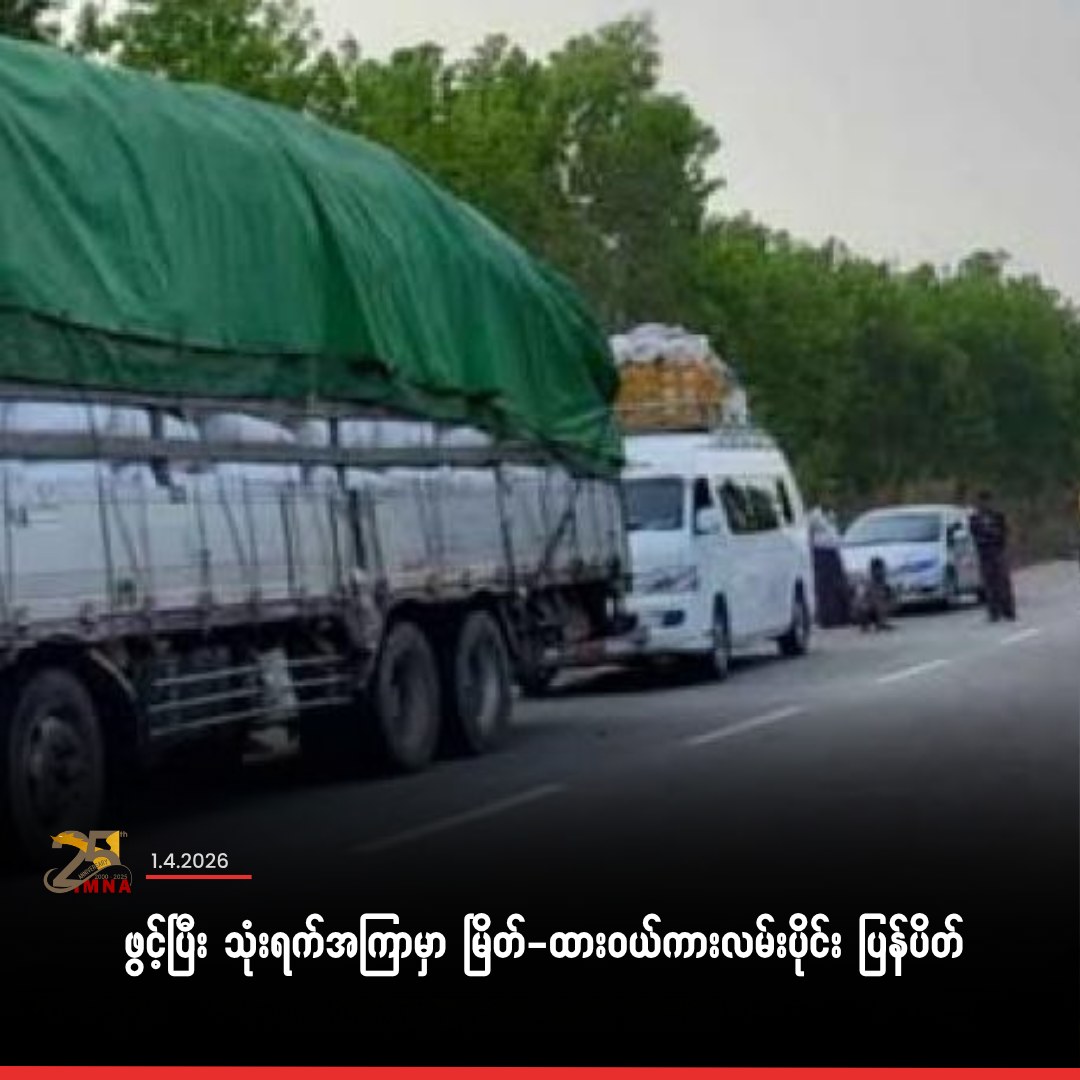 အမှတ် (၈) ပြည်ထောင်စုလမ်းမကြီး မြိတ်-ထားဝယ် ကားလမ်းပိုင်းကို သွားလာခွင့်ပြုပြီး ၃ ရက်အကြာ မတ်လ ၃၁ ရက်နေ့ကစပြီး သွားလာခွင့် ပြန်ပိတ်လိုက်ကြောင်း ဒေသတွင်း သတင်းအရင်းအမြစ်များထံမှ သိရသည်။