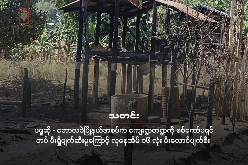 ကျေးရွာက နေအိမ်တွေ မီးလောင်တာကို အဝေးက မြင်တွေ့ရပြီး ခန့်မှန်းခြေ လူနေအိမ် ၁၆လုံးခန့် မီးလောင်ခဲ့တယ်လို့ ဆိုပါတယ်။