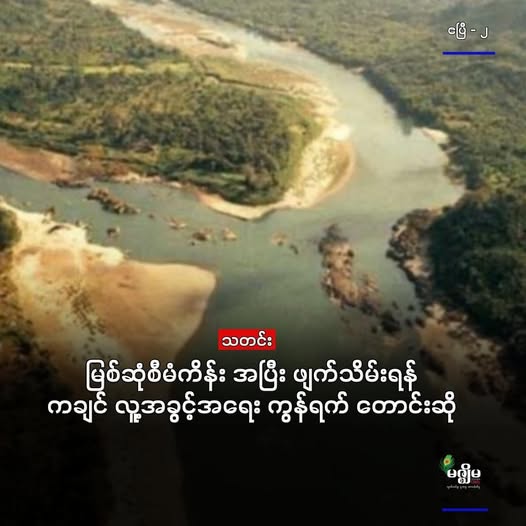 အစိုးရအဆက်ဆက် ရပ်ဆိုင်းထားခဲ့သည့် မြစ်ဆုံရေကာတာ စီမံကိန်းကို စစ်ကော်မရှင်က ယခု ပြန်လည်စတင်ရန် ကြိုးပမ်းလာမှုအပေါ် ပြင်းထန်စွာ ကန့်ကွက်ရှုတ်ချကြောင်းလည်း ဖော်ပြသည်။