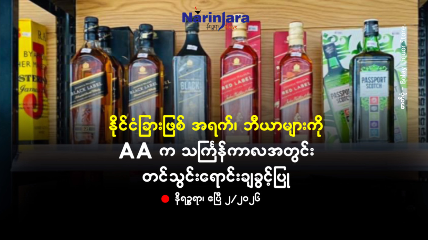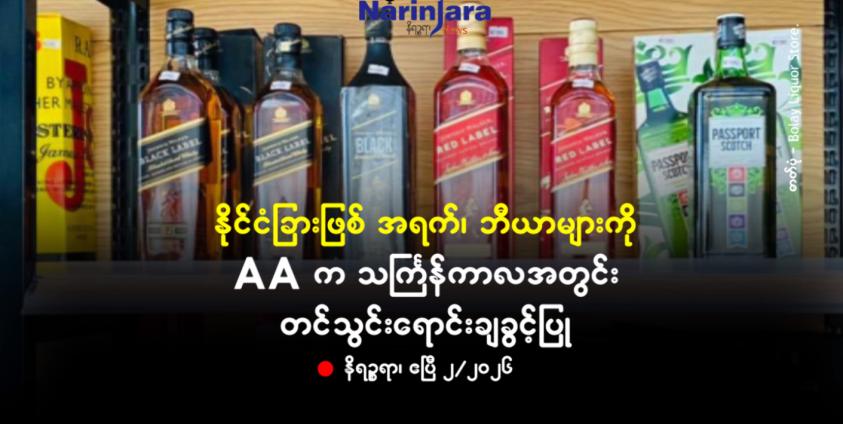 ကျော်သီဟ — နိုင်ငံခြားဖြစ် အရက်နှင့် ဘီယာများကို အာရက္ခတပ်တော်(AA)က သင်္ကြန်ကာလအတွင်း တင်သွင်းရောင်းချခွင့်ပြုလိုက်ကြောင်း သိရသည်။