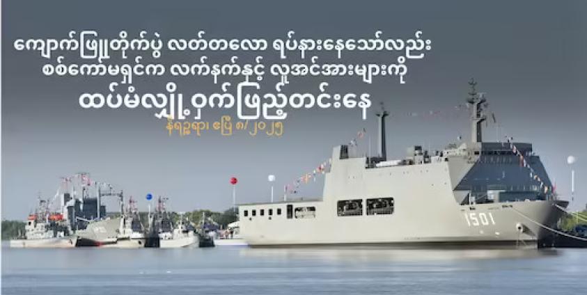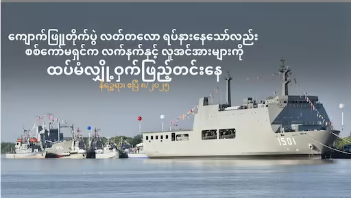 ၎င်းလျှို့ ဝှက်စစ်အင်အားများကို ကျောက်ဖြူမြို့တောင်ဘက် သစ်ပုတ်တောင်၊ ဓည၀တီ ရေတပ်ဌာနချုပ်မှတစ်ဆင့် ညအချိန်လျှို့ ဝှက်ဖြည့်တင်းနေသည်ဟု သတင်းရရှိသည်။