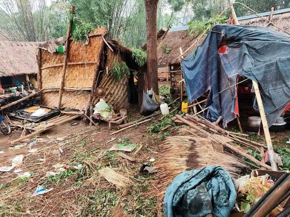 လေပြင်းတိုက်ခိုက်မှုကြောင့် စစ်ရှောင်နေအိမ်တချို့ ပျက်စီး