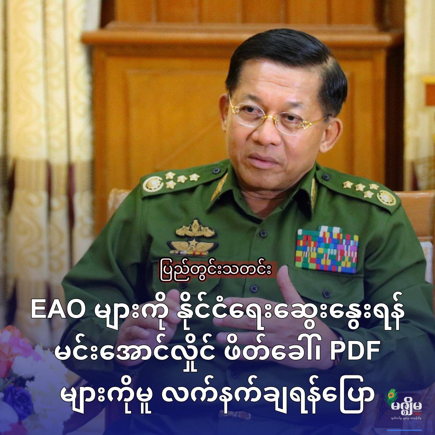 ဦးမင်းအောင်လှိုင် ဦးဆောင်သည့် အရပ်သားတပိုင်း စစ်အုပ်ချုပ်ရေးအဖွဲ့၏ ငါးနှစ်တာသက်တမ်း ပထမဆုံးအစည်းအဝေးကို ဧပြီလ ၂၀ ရက်က နေပြည်တော်၌ ပြုလုပ်ခဲ့ရာ ၎င်းက တိုင်းရင်းသားလက်နက်ကိုင်အဖွဲ့ (EAO) များကို နိုင်ငံရေးတွေ့ဆုံဆွေးနွေးရန် ဖိတ်ခေါ်ခဲ့ပြီး PDF များကိုမူ လက်နက်ချရန် ပြောကြားသွားသည်။