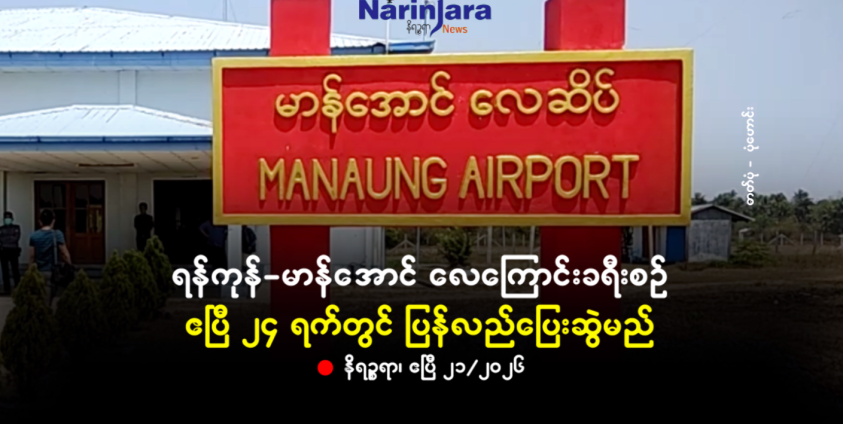 ဆောင်းဦးမာန် — ရန်ကုန်မြို့မှ ရခိုင်ပြည်၊ မာန်အောင်မြို့သို့ ပြေးဆွဲမည့် လေကြောင်းခရီးစဉ်ကို လာမည့် ဧပြီလ ၂၄ ရက်တွင် ပြန်လည်ပြေးဆွဲတော့မည်ဖြစ်ကြောင်း သတင်းရရှိသည်။