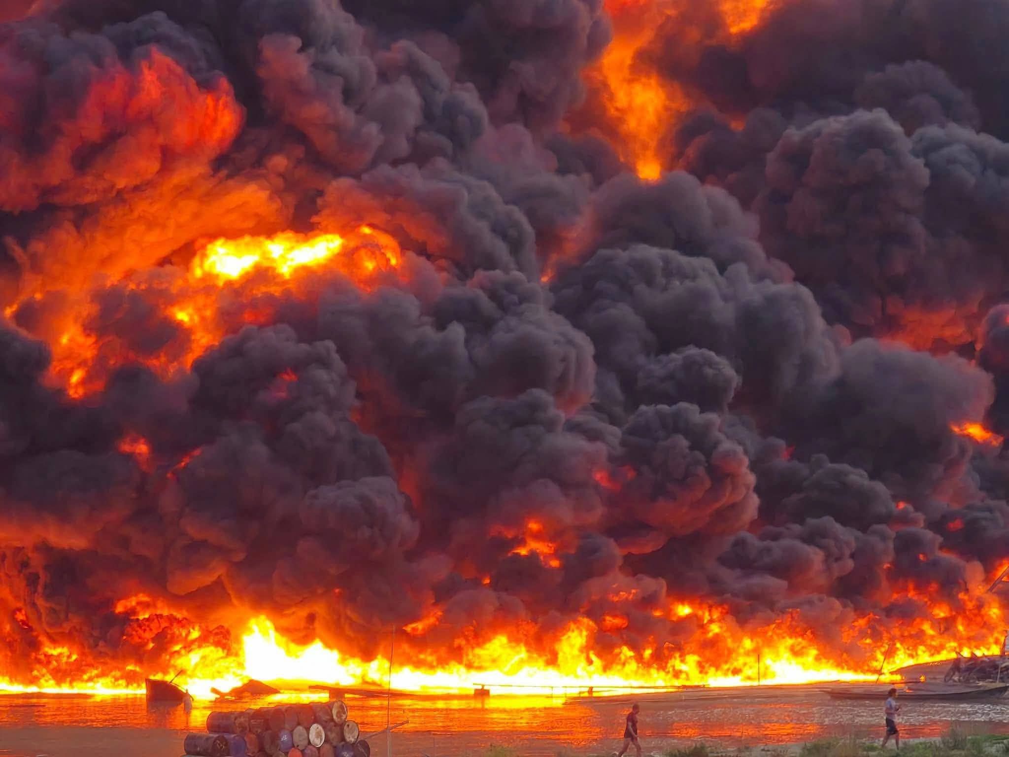 ဧပြီ ၂ဝ ရက် ညနေပိုင်းက ဟုမ္မလင်းဆိပ်ကမ်းမှာ ဆိုက်ကပ်ထားတဲ့ စက်သုံးဆီတင်ရေယာဉ်တစ်စီးကနေ ဆီပန့်ရိုက်နေချိန်မှာ မီးလောင်ကျွမ်းမှုဖြစ်ပွားခဲ့ပြီး ရေယာဉ် ၂၂ စီးအထိ မီးလောင်ပျက်စီးခဲ့တာလည်းဖြစ်ပါတယ်။