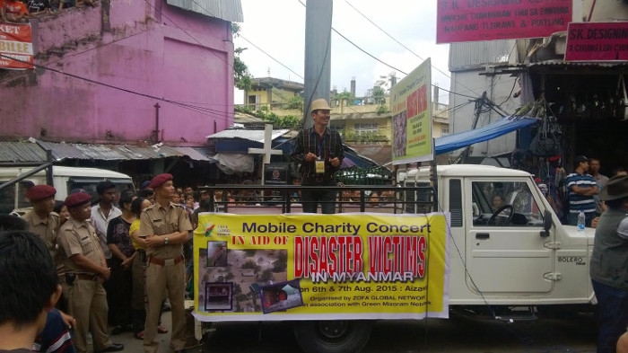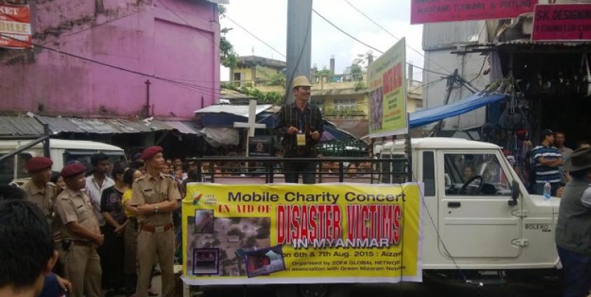 Mobile Charity Concert “In Aid of Disaster Victims in Myanmar” ဆိုသည့် အဆိုပါ ဖျော်ဖြေရေးအစီအစဉ်ကို ပြည်နယ် မြို့တော် အိုင်ဇောလ် ရပ်ကွက် ၄ နေရာတွင် ပြုလုပ်ခဲ့တာဖြစ်ပြီး မီဇို နာမည်ကြီး အဆိုတော်များက သီချင်းအားဖြင့် ဖျော်ဖြေကာ Miss Mizoram အလှမယ်များက အလှူခံခဲ့ကြသည်။