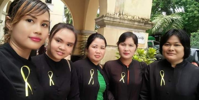 ထို့အပြင် ယနေ့နံနက်တွင်လည်း ရန်ကုန်မြို့ရှိ မြန်မာမီဒီယာ ရှေ့နေများကွန်ရက်ရုံးခန်းတွင် တရားလွှတ်တော် ရှေ့နေများက ဖဲကြိုးဝါများကို အလုပ်စားပွဲတွင် တင်ထားခြင်း၊ တိုက်ပုံများတွင် ကပ်ခြင်း စသည့်ပုံစံများဖြင့် တရားရေးနယ်ပယ်တွင် တပ်မတော်သားများ ခန့်အပ်နေရာပေးထားမှုကို ဆန့်ကျင်လျှက်ရှိကြောင်း သိရသည်။