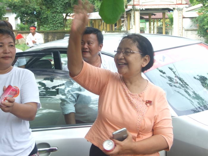 မေး - ဘာကြောင့် ဒီရွေးကောက်ပွဲမှာ ကိုယ်စားလှယ်တစ်ယောက်အဖြစ်အရွေးခံရတာလဲ။ဖြေ - အန်တီက NLDပါတီစပြီး တည်ထောင်ကတည်းက သထုံမြို့ရဲ့ အဖွဲ့ဝင်အဖြစ်ပါခဲ့တယ်။ အမေစု ရဲ့ ခေါင်းဆောင်မှူကိုလည်း အရမ်းလည်း ယုံကြည်တယ်။ အမေစုကို အရမ်းလည်း လေးစားတယ်။ ဒီပါတီရဲ့ မူဝါဒကိုလည်း အရမ်းကြိုက်တယ်။ ဒီပါတီက ရွေးကောက်ပွဲ ဝင်မယ်ဆုံးဖြတ်တဲ့ အခါမှာ လည်း အန်တီတို့အနေနဲ့ အန်တီက တရားလွှတ်တော်ရှေ့နေတစ်ယောက် ဖြစ်ပါတယ်။ အန်တီ ဥပဒေသမားတစ်ယောက်အနေနဲ့ နိုင်ငံအတွက် အမှန်တကယ် လိုအပ်နေတဲ့ ဥပဒေတွေ တိုင်းပြည် အတွက်ကော ပြည်သူအတွက်ကော ကာကွယ်စောင့်ရှောက်တဲ့ ဥပဒေတွေကို ပြုတဲ့နေရာမှာပေါ့နော်။ ဒီပြည်သူ့လွှတ်တော်လိုနေရာမျိူးတွေက ဥပဒေတွေပြုတဲ့နေရာဖြစ်တဲ့အခါကျတော့ အဲလို ဥပဒေတွေ ပြုတဲ့ဆီမှာ အန်တီတတ်နိုင်သလောက်ပေါ့နော်။ ပါတီရဲ့ မူဝါဒနဲ့ အညီလုပ်ဆောင်ပေးလိုတဲ့ စိတ်ရှိတဲ့ အတွက်ကြောင့် လွှတ်တော်ကိုုယ်စားလှယ်တစ်ယောက်အဖြစ်ဝင်ရောက်ယှဉ်ပြိုင်ရခြင်းဖြစ်တယ်။