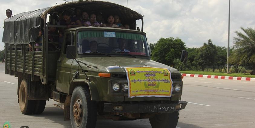 နေပြည်တော်ရှိ ဥပ္ပါတသန္တိစေတီ တပေါင်းကွင်းတွင် ပြုလုပ်သည့် မျိုးစောင့်ဥပဒေအောင်ပွဲသို့ တက်ရောက်လာသော ရာဂဏန်းရှိသည့် ယာဉ်များအနက် တပ်မတော်ယာဉ်အမှတ် ၁၇၂၇(ဗ)ဖြင့် အရပ်သားများ တက်ရောက်လာခြင်း ဖြစ်သည်။