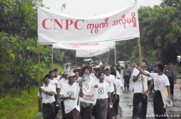 ဆန္ဒဖော်ထုတ်ပွဲတွင် CNPC ကုမ္ပဏီအလိုမရှိ အလိုမရှိ၊ ရေနံဓာတ်ငွေ့ပိုက်လိုင်းကြောင့် လယ်ယာမြေ နစ်နာသည့် ကိစ္စ အပြည့်အဝ ရရှိရေး ဆောင်ရွက်ပေး ဆောင်ရွက်ပေး၊ ပိုက်လိုင်းစီမံကိန်းကြောင့် ပျက်စီးသွားသည့် လယ်ယာမြေများ မူလအတိုင်းဖြစ်အောင် ဆောင်ရွက်ပေး ဆောင်ရွက်ပေး စသည့် ဆိုင်ဘုတ်များကို ကိုင်ဆောင်ပြီး လမ်းလျှောက်ဆန္ဒဖော်ထုတ်ခဲ့ကြသည်။