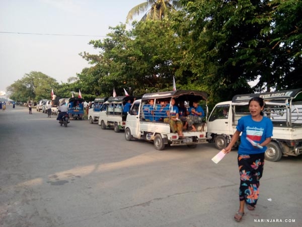 “ကျွန်တော့်ရဲ့မဲဆွယ်စည်းရုံးရေးကို အောင်မင်္ဂလာ နိမိတ်အနေနဲ့ စစ်တွေမြို့နယ် အောင်တိုင်ရွာက စက်တင်ဘာလ ၂၃ ရက်နေ့မှာ စတင်ခဲ့ပြီးတော့ စစ်တွေမြို့ပေါ်မှာ ဆိုရင် ဒီကနေ့ စက်တင်ဘာလ ၂၆ ရက်နေ့မှာ စတင်လိုက်ပါတယ်”ဟု မဲဆွယ်စည်းရုံးရေးလုပ်နေစဉ် နိရဥ္စရာသတင်းဌာနသို့ ပြောသည်။