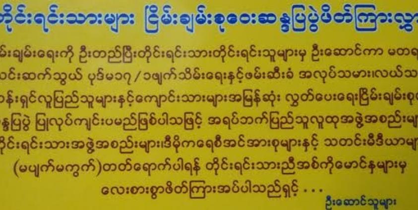 မူလက မြန်မာငြိမ်းချမ်းရေးစင်တာ MPC ၌ ပြုလုပ်ရန် စီစဉ်ထားသော်လည်း သက်ဆိုင်ရာ အာဏာပိုင် များက ခွင့်မပြုသော ကြောင့် တာမွေမြို့နယ်၊ ကျိုက္ကစံ ဟစ်တိုင်ကွင်းကို ရွေးချယ်ပြီး နံနက် ၁၀ နာရီမှ စတင်ကာ ဆန္ဒပြကြမည်ဟု ၎င်းက ဆိုသည်။