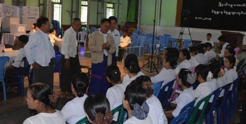 ရွေးကောက်ပွဲဆိုင်ရာ မဲရုံမှူးသင်တန်း မြို့နယ်ကော်မရှင် ပို့ချပေးနေ