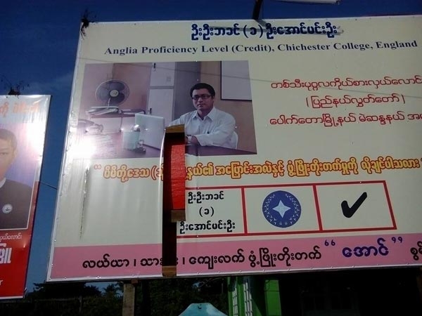 ပေါက်တောမြို့နယ်မှ လွှတ်တော်ကိုယ်စားလှယ်ဦးအောင်မင်းဦး၏ ဆိုင်းဘုတ် ဖျက်ဆီးခံရ