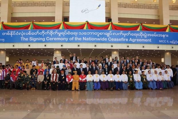 မြန်မာအစိုးရနှင့် KNU၊ ဒီမိုကရေစီအကျိုးပြု ကရင်တပ်မတော် DKBA၊ KNU/KNLA-PC၊ ရှမ်းပြည် ပြန်လည်ထူထောင်ရေးကောင်စီ RCSS၊ ပအိုဝ်းအမျိုးသားလွတ်မြောက်ရေးအဖွဲ့ချုပ် PNLO၊ ချင်းအမျိုးသားတပ်ဦး CNF၊ ရခိုင်ပြည်လွတ်မြောက်ရေးပါတီ ALP၊ မြန်မာနိုင်ငံလုံးဆိုင်ရာ ကျောင်းသားများ ဒီမိုကရက်တစ်တပ်ဦး ABSDF စသည့် တိုင်းရင်းသားလက်နက်ကိုင် ၈ ဖွဲ့တို့ အောက်တိုဘာ ၁၅ ရက်နေ့တွင် လက်မှတ်ရေးထိုးခဲ့ကြပြီး ဖြစ်သည်။