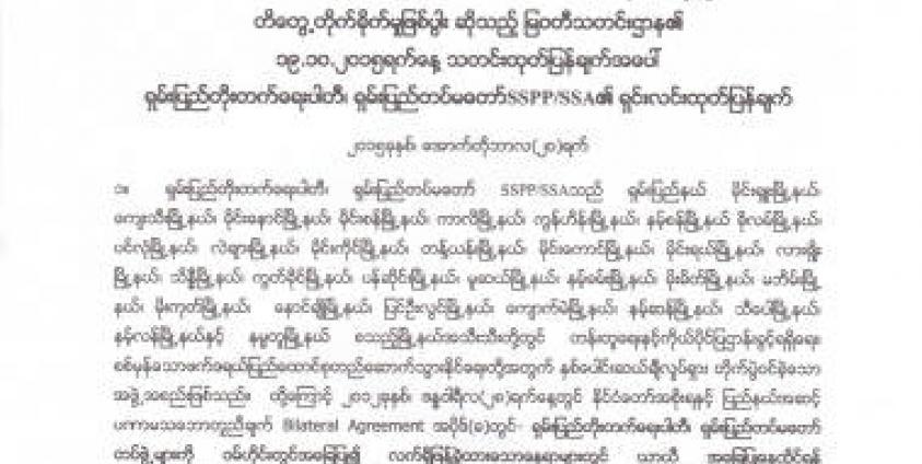 ၂၀၁၂ ခု ပြည်နယ်/ပြည်ထောင်စု အဆင့် ငြိမ်းချမ်းရေးဆွေးနွေးပွဲ သဘောတူညီချက်လက်မှတ်ထိုး ပြီးနောက် SSPP/ SSA တပ်ဖွဲ့များမှ တပ်မတော်အား စတင်ပစ်ခတ်တိုက်ခိုက်မှုတစ်ကြိမ်မျှမရှိဟုလည်း ဆိုသည်။