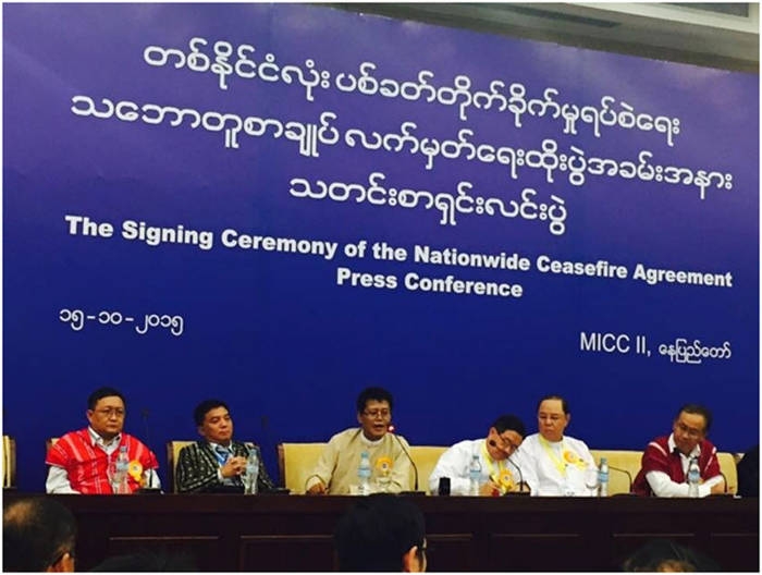 NCA စာချုပ်ကို အစိုးရဖိတ်ခေါ်သည့် တိုင်းရင်းသားလက်နက်ကိုင်အဖွဲ့ ၁၅ခုမှ ALP၊ KNU (ကရင် အမျိုးသား အစည်းအရုံး) တို့ အပါအဝင် ၈ဖွဲ့က အောက်တိုဘာ ၁၅ရက်နေ့၊ နေပြည်တော်တွင် အစိုးရနှင့် လက်မှတ်ရေးထိုးခဲ့သည်။
