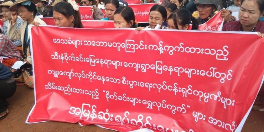 ထိုသို့ ရွာမြေများပေါ် ဝင်ရောက်တူးဖေါ်နေခြင်းအား ရပ်တန့်ပေးရန် ၂၀၁၃ ခုနှစ် ဇန်နဝါရီလ မှ ၂၀၁၅ ခုနှစ်၊ အောက်တိုဘာ ၁၀ ရက်နေ့အထိ ပြည်ထောင်စု အစိုးရအဖွဲ့နှင့် တိုင်းဒေသကြီး အစိုးရအဖွဲ့ထံ အကြိမ် ၃၀ တိုင်စာများ ပေးပို့ခဲ့သော်လည်း ယနေ့အချိန်ထိ ဆောင်ရွက်ပေးခြင်း မရှိသောကြောင့် ဆန္ဒဖော်ထုတ်ခြင်းဖြစ်ပြီး အရေးယူဆောင်ရွက်မှုများ မရှိပါက ရွေးကောက်ပွဲအပြီး ၁၅ ရက် ပြည့်သည့်နေ့တွင် သပိတ်ကျင်းမြို့နယ် ထွေ/အုပ် ရုံးရှေ့တွင် ထိုင်သပိတ် ဆင်နွှဲသွားမည်ဟု ဆန္ဒဖော်ထုတ်သူများက ဆိုသည်။