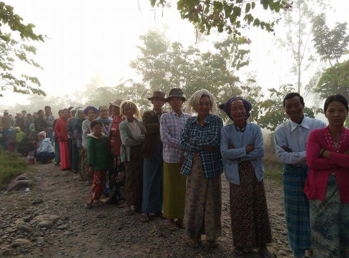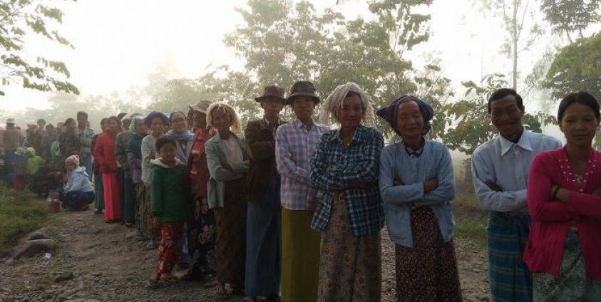 မိုးကောင်းမြို့နယ် ကညှင်မြိုင်ကျေးရွာ ကအေးချမ်တဲ့ မြူနှင်းများနှင့်အတူ မဲပေးရန်စောင့်ဆိုင်းနေစဉ်