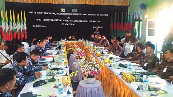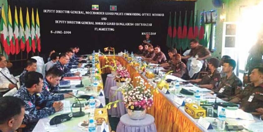 ရခိုင်ပြည်နယ် အနောက်ဘက် နယ်စပ် မောင်တောမြို့ ဒေဝါနဒီခန်းမတွင် မြန်မာနယ်ခြားစောင့်တပ် နှင့် ဘင်္ဂလာဒေ့ရှ် နယ်ခြားစောင့်တပ်တို့ အကြား တပ်မှူးအဆင့် အလံတင်အစည်းအဝေးကို ပြုလုပ်ခဲ့ကြသည်။