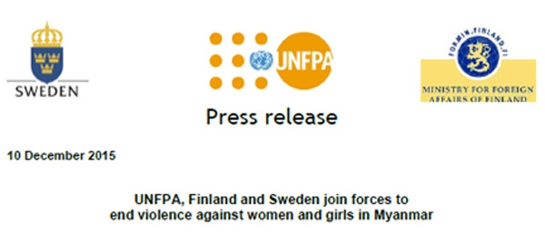 မြန်မာနိုင်ငံမှ အမျိုးသမီးများနှင့် မိန်းကလေးငယ်များ၏ အခွင့်အရေးများ ကာကွယ်ရေးဆိုင်ရာ သုံးနှစ်ကြာ အစီအစဉ်တစ်ရပ်ကို ကုလလူဦးရေရန်ပုံငွေအဖွဲ့ UNFPA နှင့်အတူ ဖင်လန်နှင့် ဆွီဒင်နိုင်ငံတို့ ပူးတွဲလုပ်ဆောင်တော့မည်ဖြစ်သည်။