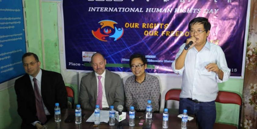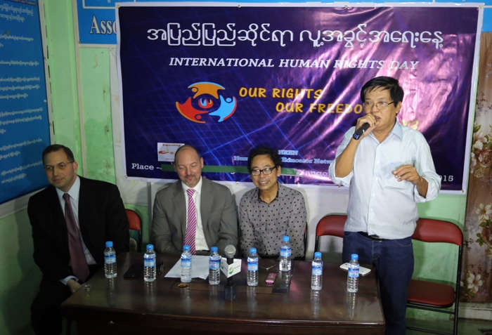 မြန်မာနိုင်ငံဆိုင်ရာ အမေရိကန်သံအမတ်ကြီး ဒဲရစ်မစ်ချယ်က "အနီးကပ်မှ အခုလိုနေရာပြောင်းလဲ လုပ်ပေမယ့် အဆင်ပြေပြေ လုပ်နိုင်တဲ့အတွက် ၀မ်းသာပါတယ်။ လုပ်နိုင်ခဲ့တဲ့လူတွေအားလုံးကို ဂုဏ်ယူချီးကျုးပါတယ်။ လူ့အခွင့်အရေးဆိုတာ ရွေးကောက်ပွဲတစ်ပွဲတည်းနဲ့ ပြောင်းလဲသွားမှာ မဟုတ်ဘူး။ အားလုံးပူးပေါင်းကြမှရမှာပါ။"ဟု ဒီဇင်ဘာ ၁၀ ရက်၊ ညနေပိုင်း HREN ရုံးခန်း၌ ကျင်းပ သော အပြည်ပြည်ဆိုင်ရာလူ့အခွင့်အရေးနေ့ အခမ်းအနားတွင် ပြောကြားသည်။