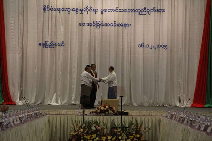 ကရင်အမျိုးသားအစည်းအရုံး KNU၊ ရှမ်းပြည်ပြန်လည်ထူထောင်ရေးကောင်စီ RCSS/SSA အပါအဝင် တိုင်းရင်းသားလက်နက် ကိုင်အဖွဲ့ ၈ဖွဲ့တို့က အောက်တိုဘာ ၁၅ရက်တွင် အစိုးရနှင့် အပစ်အခတ် ရပ်စဲရေး စာချုပ်ကိုလက်မှတ်ရေးထိုးထားသည်။