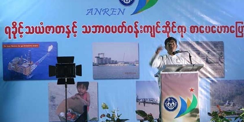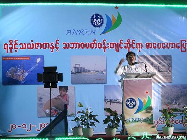 “မဟာဓာတ်အားလိုင်းက ပေးနေတဲ့လျှပ်စစ်ဓာတ်အားတွေဟာ ရွှေဂတ်(စ်) စီမံကိန်းက ရတဲ့ ဂတ်(စ်)နဲ့ပေးနေတဲ့လျှပ်စစ်မီးလို့ ရခိုင်ပြည်သူတွေက ထင်နေကြတယ်။ အဲ့ဒီလျှပ်စစ်မီးတွေဟာ ရခိုင်ကထွက်တဲ့ ရွှေဂတ်(စ်)ကပေးနေတာ မဟုတ်ဘူးဆိုတာ ကို ပြည်သူတွေကို အသိပေးစေ ချင်တယ်။ ဘင်္ဂလားပင်လယ်အော်က ကျရောက်လာတဲ့ သဘာဝဘေးအန္တရာယ်ကို ရခိုင်ပြည်သူ တွေက နှစ်စဉ်နှစ်တိုင်း ခါးဆီးခံနေကြရပြီးတော့ ဘင်္ဂလားပင်လယ်အော်ကထွက်တဲ့ သယံဇာတ အကျိုးအမြတ်တွေကိုတော့ ရခိုင်ပြည်သူတွေ တစ်ပြားတစ်ချပ်မှ မခံစားကြရဘူး ဆိုတာကို ထင်သာမြင်သာဖြစ်အောင် ချပြစေချင်တဲ့အတွက် ဒီဟောပြောပွဲကို ပြုလုပ်ရခြင်းဖြစ်ပါတယ် ”ဟု သူက ပြောသည်။
