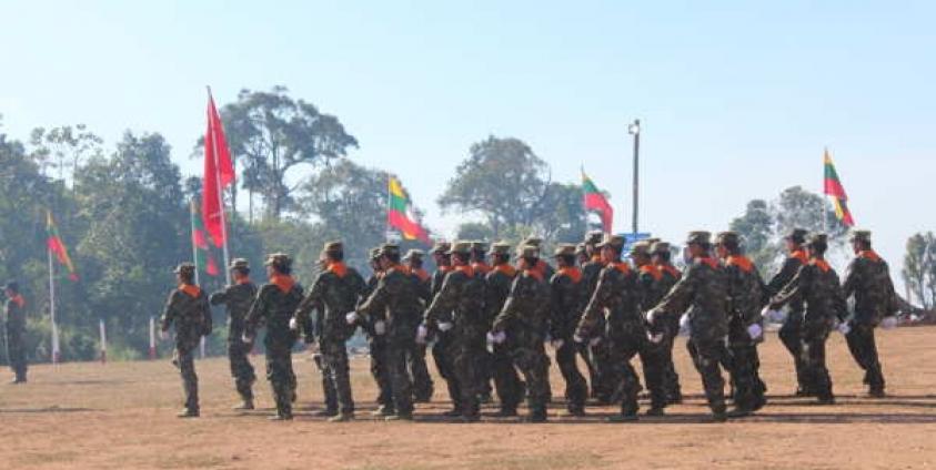 ရှမ်းအမျိုးသားနေ့ စစ်ရေးပြအခမ်းအနားတစ်ခုကို ၂၀၁၃ခုနှစ်က ရှမ်းတပ်မတော် ဌာနချုပ် လွယ်တိုင်းလျန်းတွင် တွေ့ရစဉ်။ (ဓာတ်ပုံ-သိင်္ဂီထွန်း)
