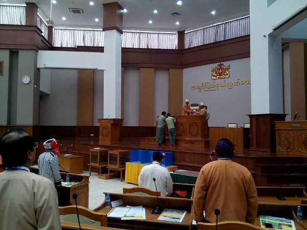 ကချင်ပြည်နယ် လွှတ်တော်အစည်းအဝေး ကျင်းပနေသည့် မြင်ကွင်းကို ဖေဖော်ဝါရီ ၈ရက်က တွေ့ရစဉ်။ (ဓာတ်ပုံ- ဒေါ်ဂျာဆိုင်းခေါန်ဖေ့စ်ဘုတ်)