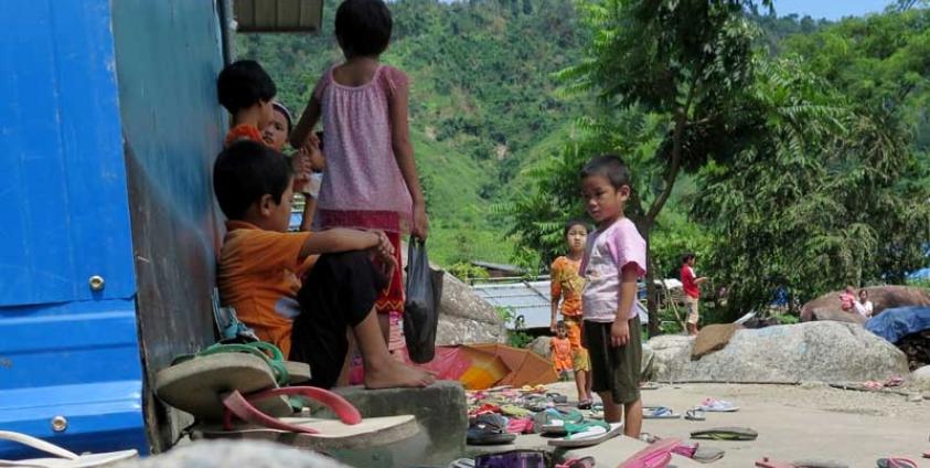ကချင်ပြည်နယ် လိုုင်ဇာမြို့ရှိ ကချင်စစ်ပြေးဒုုက္ခသည်စခန်းဖြစ်သည့် ဂျေးယန်းဒုုက္ခသည်စခန်းရှိ ဒုုက္ခသည်ကလေးငယ်အားဇူလိုုင်လ ၂၇ ရက်ကတွေ့ရစဉ်။ ဓာတ်ပုံု - မင်းမင်း (မဇ္စျိမ)