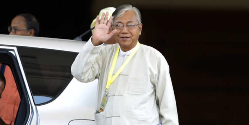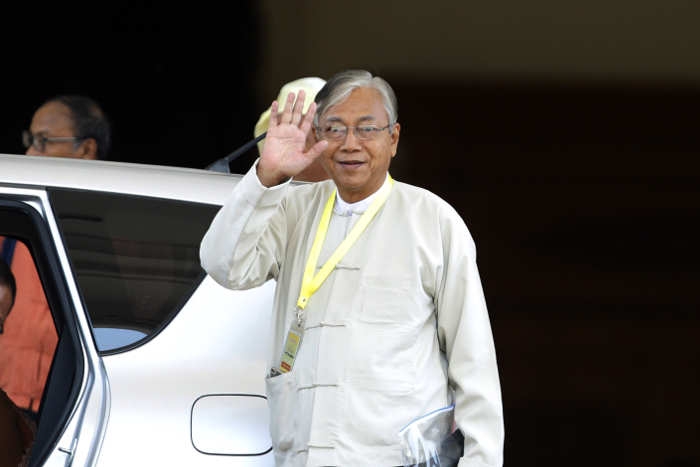 သမ္မတဦးထင်ကျော်ကို သမ္မတရွေးကောက်ပွဲအပြီး ၂၀၁၆ခုနှစ်၊ မတ်လ ၁၅ရက်က တွေ့ရစဉ်။ (ဓာတ်ပုံ-အီးပီအေ)