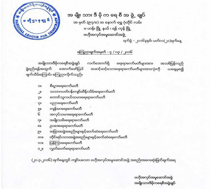 ကော်မတီများဖျက်သိမ်းရခြင်းနှင့်ပတ်သက်၍ အမျိုးသားဒီမိုကရေစီအဖွဲ့ချုပ် ဗဟိုအလုပ်အမှုဆောင် အဖွဲ့ဝင် ဦးဉာဏ်ဝင်းက "အသစ်ပြန်ဖွဲ့ဖို့ ဖျက်သိမ်းတာပါ။ အတိအကျတော့ပြောလို့မရပါဘူး။ အမြန်ဆုံးပြန်ဖွဲ့မှာပါ"ဟု ပြောသည်။