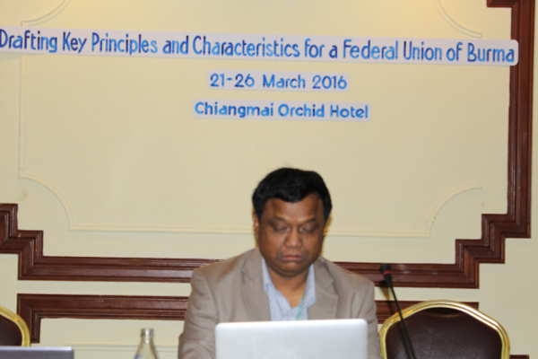 “Drafting Key Principles And Characteristics For a Fedaral Union of Burma”ဟု ခေါင်းစဉ်ပေးထားသော အလုပ်ရုံ ဆွေးနွေးပွဲကို နိုင်ငံတကာမှ ဖက်ဒရယ်ဆိုင်ရာ တတ်သိပညာရှင်များ၊ မြန်မာနိုင်ငံမှ ဖက်ဒရယ်ဆိုင်ရာ လေ့လာခဲ့သော တိုင်းရင်းသားခေါင်းဆောင်များ တက်ရောက် ဆွေးနွေးနေခြင်း ဖြစ်သည်။