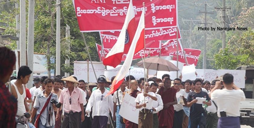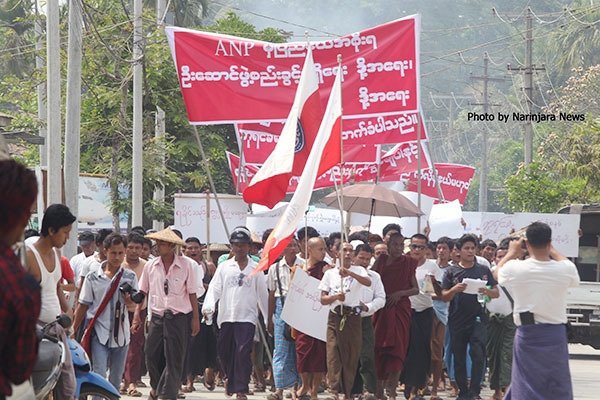 ဆန္ဒပြသူ လူပေါင်း တစ်ထောင်ကျော်သည် မွန်းလွဲ ၂ နာရီမှ စတင်ကာ ပိုစတာများ၊ ဆိုင်းဘုတ်များကို ကိုယ်စီကိုင်ဆောင်ကာ လမ်းမများပေါ် ချီတက်ခဲ့ကြပြီး ရခိုင်ပြည်နယ် ANP က ဖွဲ့စည်းခွင့်ရရေး၊ ပြည်နယ် ၀န်ကြီးချုပ်ကို ANP ခန့်အပ်ရေး၊ တန်းတူ အခွင့်အရေး ရရှိရေး၊ ပြည်သူများ၏ ဆန္ဒကို လေးစားရေး စသည့် ကြွေးကြော်သံများ ကြွေးကြော်ကာ ဆန္ဒပြတောင်းဆိုခဲ့ကြသည်။