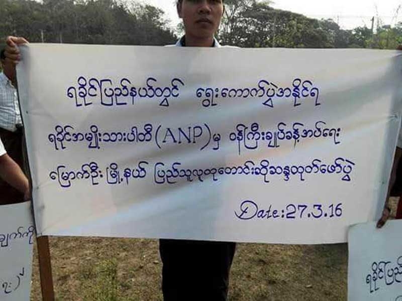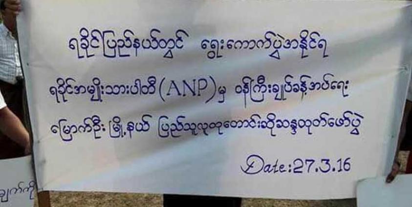 “ဒီနေ့လုပ်တဲ့ လူထုထောက်ခံပွဲဟာ ပါတီဗဟိုက ထုတ်ပြန်ထားတဲ့ ၁/၂၀၁၆နဲ့ ၂/၂၀၁၆ ကို ထောက်ခံကြောင်း လူထု စုဝေးပွဲတစ်ခု လုပ်တာပါ။ ရခိုင်ပြည်နယ်ဝန်ကြီးချုပ်ကို ရခိုင်ပါတီက ကိုယ်စားလှယ်တွေကို ရွေးချယ်ပေးဖို့အတွက်ကျနော်တို့ တောင်းဆိုပါတယ်။” ဟု ဆန္ဒဖော်ထုတ်ပွဲ တက်ရောက်သူ၊ ပြည်နယ်လွှတ်တော် ကိုယ်စားလှယ်ဟောင်း မြောက်ဦးမြို့နယ် ရခိုင်အမျိုးသားပါတီ ဥက္ကဋ္ဌ ဦးဦးထွန်းလှိုင်က ပြောသည်။