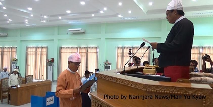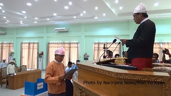 ယင်းနေ့နံနက်ပိုင်းက ရခိုင်ပြည်နယ် စစ်တွေမြို့တွင်ပြုလုပ်ခဲ့သည့် ဒုတိယအကြိမ် ရခိုင်ပြည်နယ်လွှတ်တော် သတ္တမပုံမှန်အစည်း အဝေးတွင် ပြည်နယ်လွှတ်တော်ဥက္ကဋ္ဌရှေ့မှောက်တွင် ကျိန်ဆိုလိုက်ခြင်းဖြစ်သည်။
