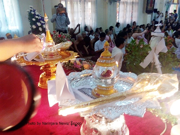 အဆိုပါဓါတ်တော်များမှာ အလိုတော်ပြည့်ဆရာတော် ဦးအရိယဝံသ သီရိလင်္ကာနိုင်ငံသို့ သမ္မတ၏ ပင့်ဆောင်မှုကြောင့် ၂၀၁၄ ခုနှစ်က ကြွရောက်စဉ် သိရိလင်္ကာ သမ္မတက လှူဒါန်းလိုက်သည့် ဓါတ်တော်များ ဖြစ်သည်ဟု သိရသည်။